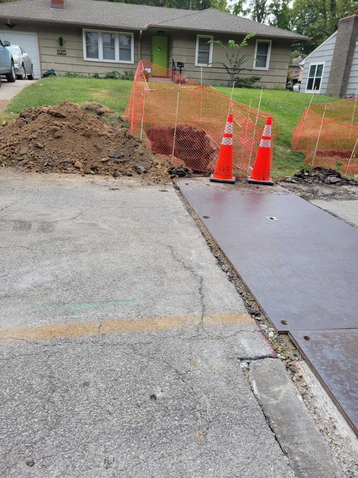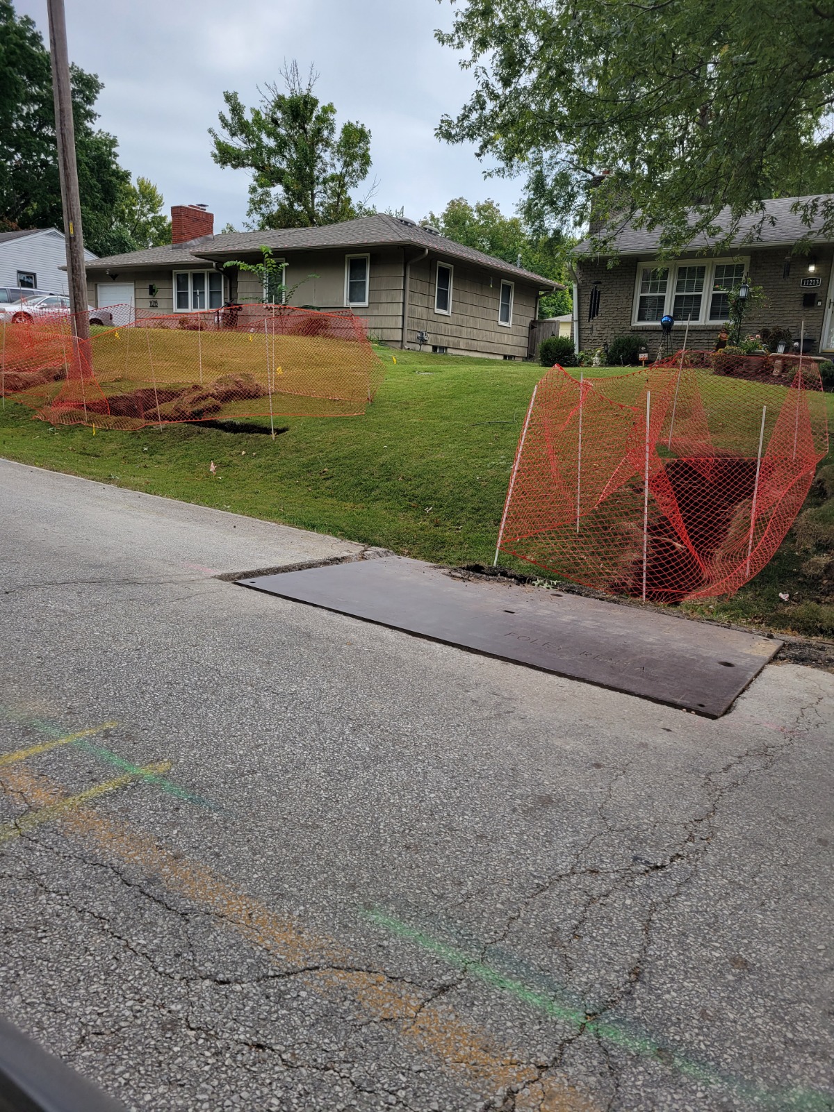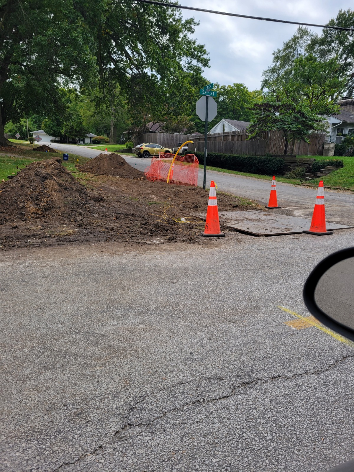 All summer, either 59th street or Raytown Rd has been shut down as the large tubes for storm runoff have been installed. This area in front of the City Hall is now completed and here are the efforts to redo the street before repaving.